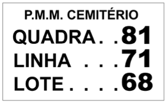 Alguns cemitérios exigem uma placa de endereçamento do jazigo, que poderemos prover adicionalmente.